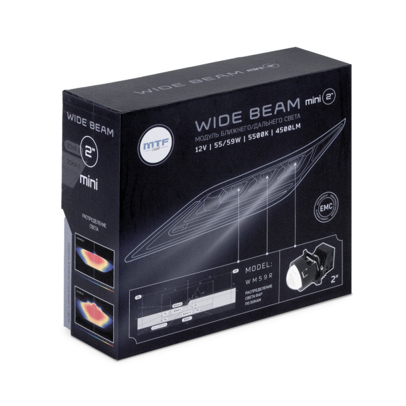 Би-линза 12V 2.0" LED 5500K 2CH 55W/59W WideBeam Mini 24мес. MTF