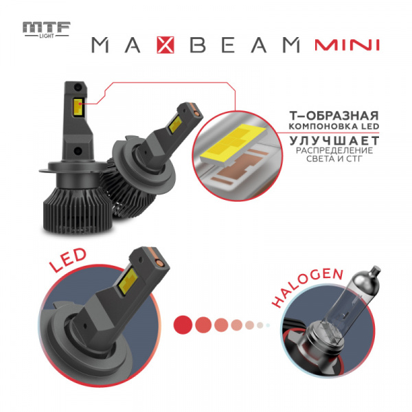 Автолампа светодиодная 12V H4/H19 MaxBeam Mini 6000K MM04K6 MTF